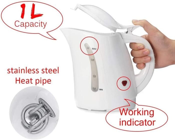 بسعة 1 لتر ، يمكنها توفير ما يقرب من 3 إلى 4 أكواب من الماء المغلي ، مما يجعلها مثالية لتلبية احتياجاتك. تتميز الغلاية بتصميم مقبض عملي لسهولة سكبها ومنع الحروق.
