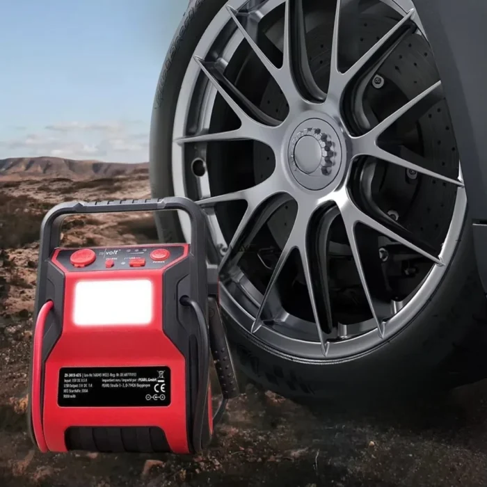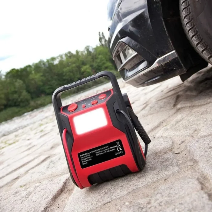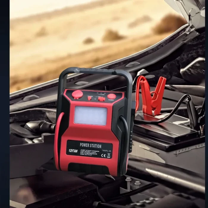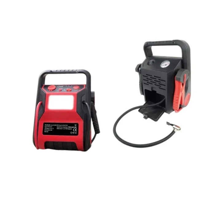 يعمل الجهاز كمنفاخ هواء، مشغل للبطارية، مصدر طاقة محمول، ومصباح LED قوي، بالإضافة إلى مقياس ضغط الإطارات.
