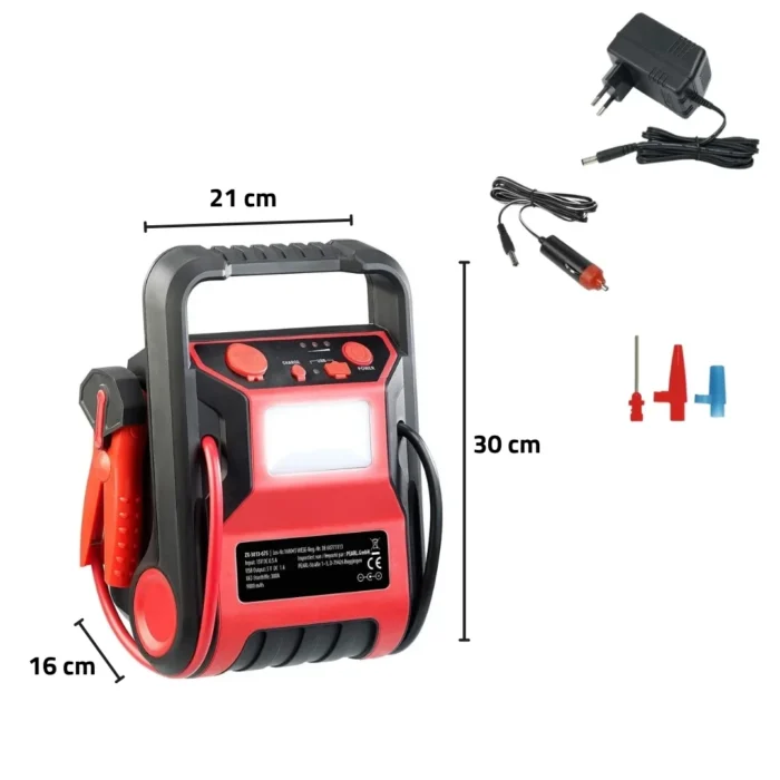 يمكن إعادة إحياء مركبتك من خلال ملاقط مدمجة يمكن تعليقها بسهولة ضمن الجهاز، قادر على التعامل وتشغيل جميع البطاريات ذات جهد 12 فولط. كما أنه يحتوي على حماية من الحمل الكهربائي الزائد.