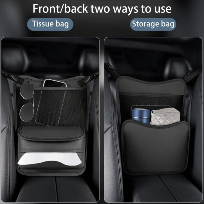 منظم مقعد السيارة العملي مصمم لتوفير مساحة تخزين إضافية داخل السيارة، مما يجعله مثاليًا لحفظ الأغراض الشخصية مثل الحقائب، المستندات، الهواتف، والمحفظة بشكل منظم وسهل الوصول إليه. كما يمكن استخدامه كحاجز لمنع الحيوانات الأليفة أو الأطفال من الوصول إلى المقاعد الأمامية أثناء القيادة.